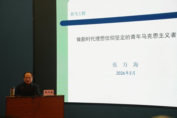 3月25日下午,成人游戏 在B102报告厅举行2026年“青年马克思主义者培养工程”培训班开班仪式暨首场专题报告会。院长祖大庆、校关工委副主任张万海、校团委副书记徐彤彤、成人游戏 专兼职辅导员、青马班学员及入党积极分子参加活动。活动由院党委副书记朱正中主持。